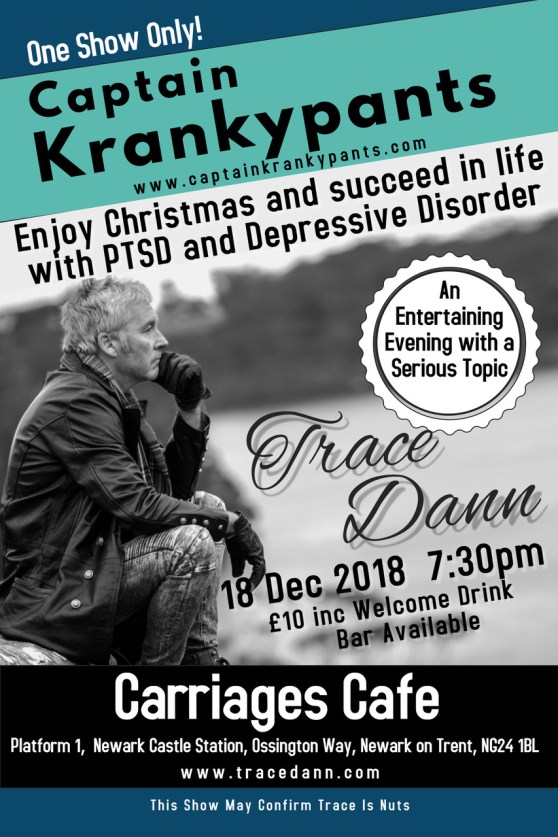 On Tuesday 18 December Australian returning veteran and successful businessman Trace Dann, known to audiences worldwide as the legendary Captain Krankypants, will be entertaining guests at Newark’s Carriages Café with his highly energetic presentation on how to enjoy life despite suffering from Depressive Disorder and PTSD.